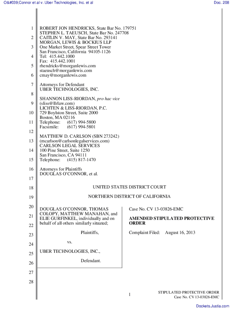O'Connor et al. v. Uber Technologies, Inc. et al1