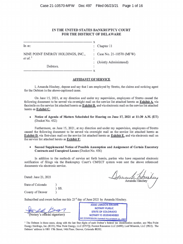 Case 2110570MFWDoc 497Filed 06/23/21Page 1 of 16IN THE UNITED STATES BANKRUPTCY COURT FOR THE DISTRICT OF DELAWARE In re:Chapter 11 Case No. 2110570 (MFA)NINE POINT ENERGY HOLDINGS, INC., et al.1Debtors.(Jointly