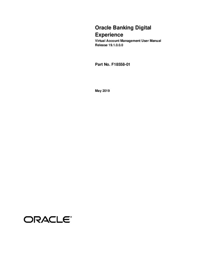 Oracle Banking Digital Experience Virtual Account Management User Manual Release 19.1.0.0.0Part No. F1855801May 2019PrefaceVirtual Account Management User Manual May 2019Oracle Financial Services