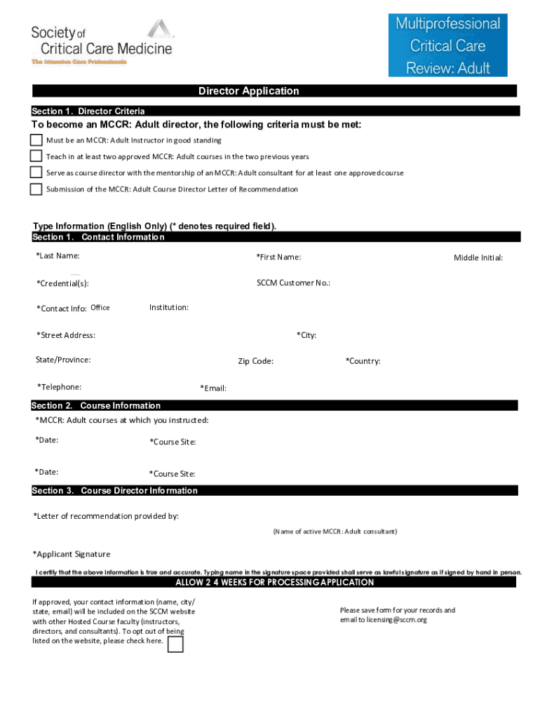Section 1. Director Criteria become an CCR: Adult director, the following criteria must be met: