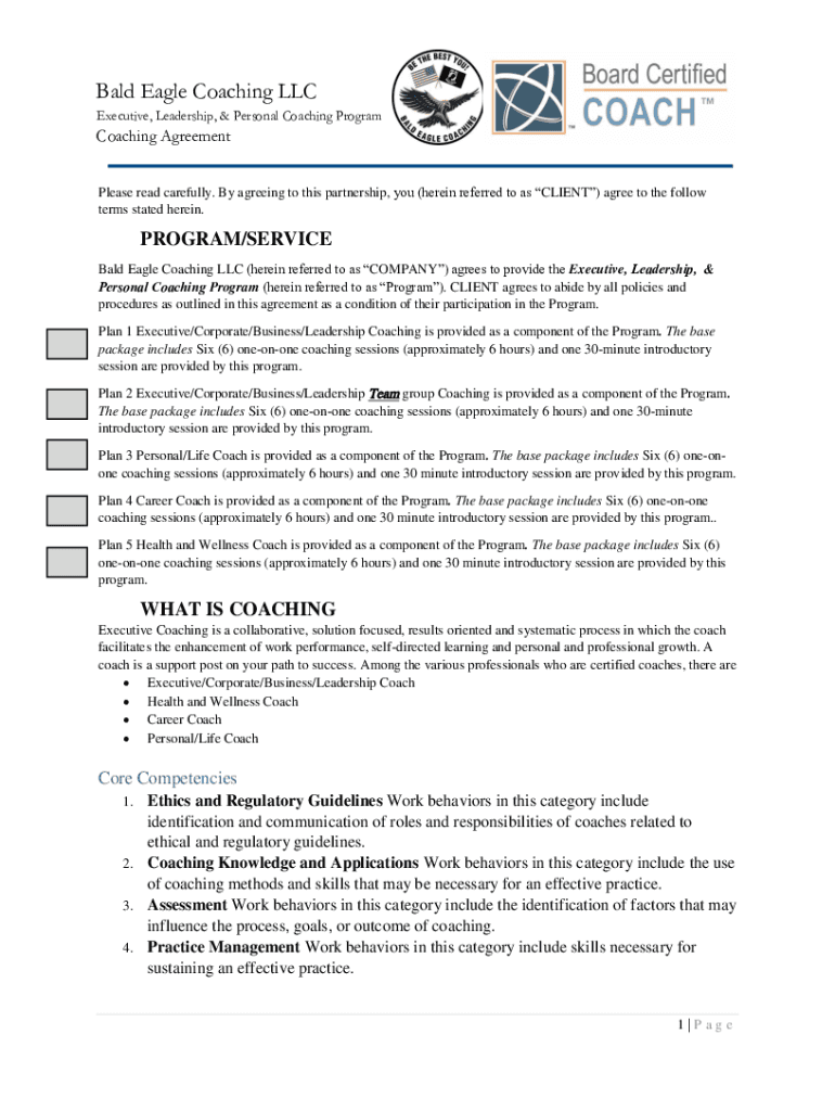 Executive, Leadership, & Personal Coaching ProgramCoaching Agreement