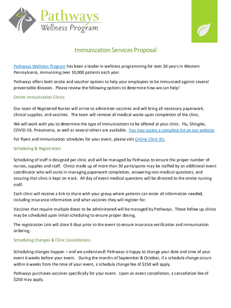 Immunization Services Proposal Pathways Wellness Program has been a leader in wellness programming for over 20 years in Western Pennsylvania, immunizing over 10,000 patients each year. Pathway offers