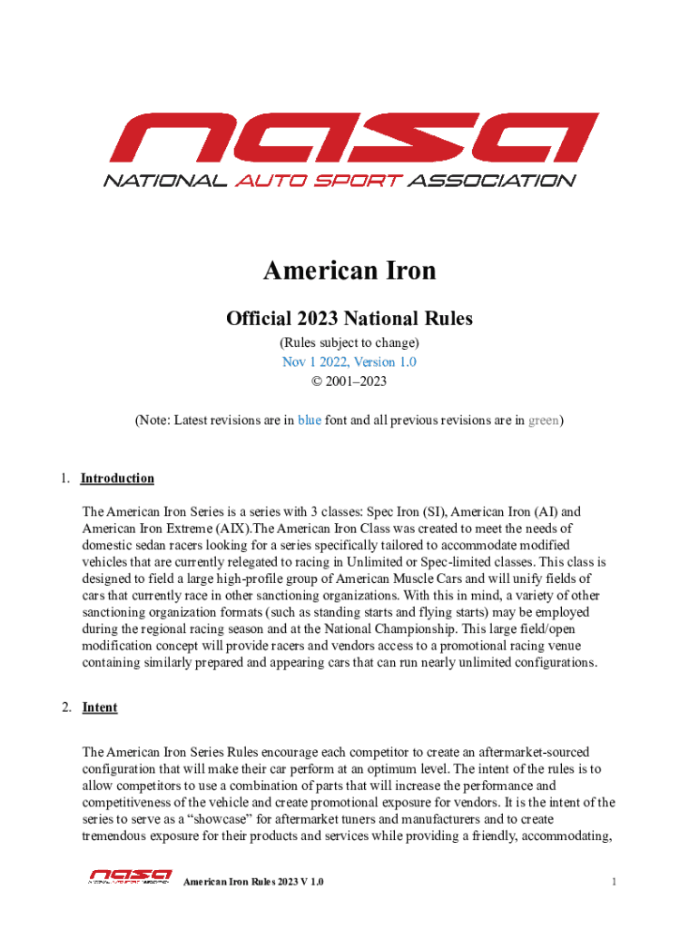 American Iron Official 2023 National Rules (Rules subject to change) Nov 1 2022, Version 1.0 20012023 (Note: Latest revisions are in blue font and all previous revisions are in green)1. Introduction
