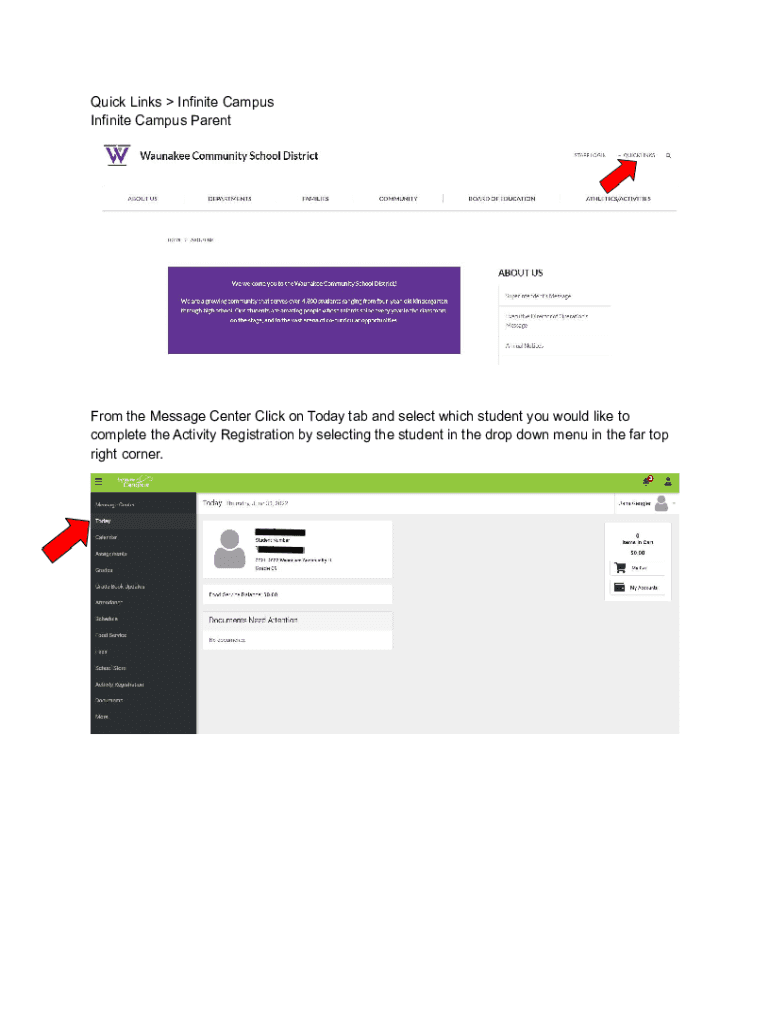 Quick Links Infinite Campus Parenthood the Message Center Click on Today tab and select which student you would like to