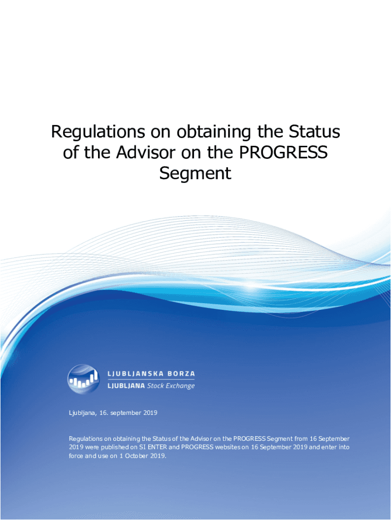 Regulations on obtaining the Status of the Advisor on the PROGRESS Segment Ljubljana, 16. September 2019Regulations on obtaining the Status of the Advisor on the PROGRESS Segment from 16 September