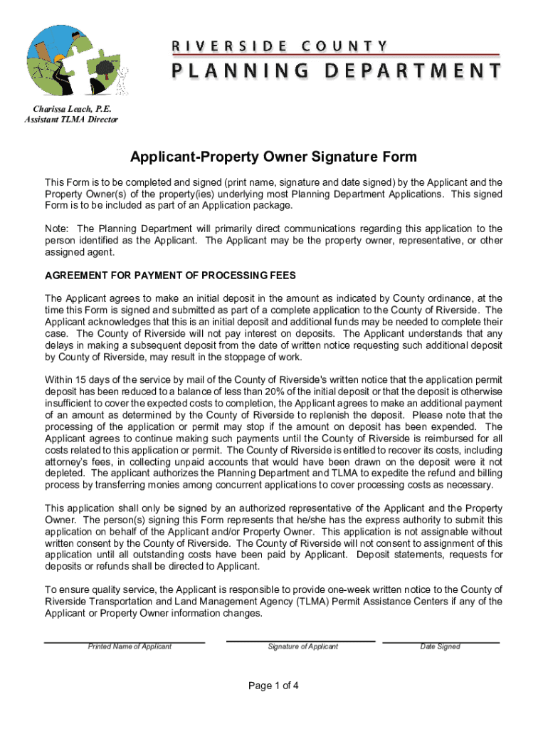 Charissa Leach, P.E. Assistant ALMA DirectorApplicantProperty Owner Signature Form This Form is to be completed and signed (print name, signature and date signed) by the Applicant and the Property