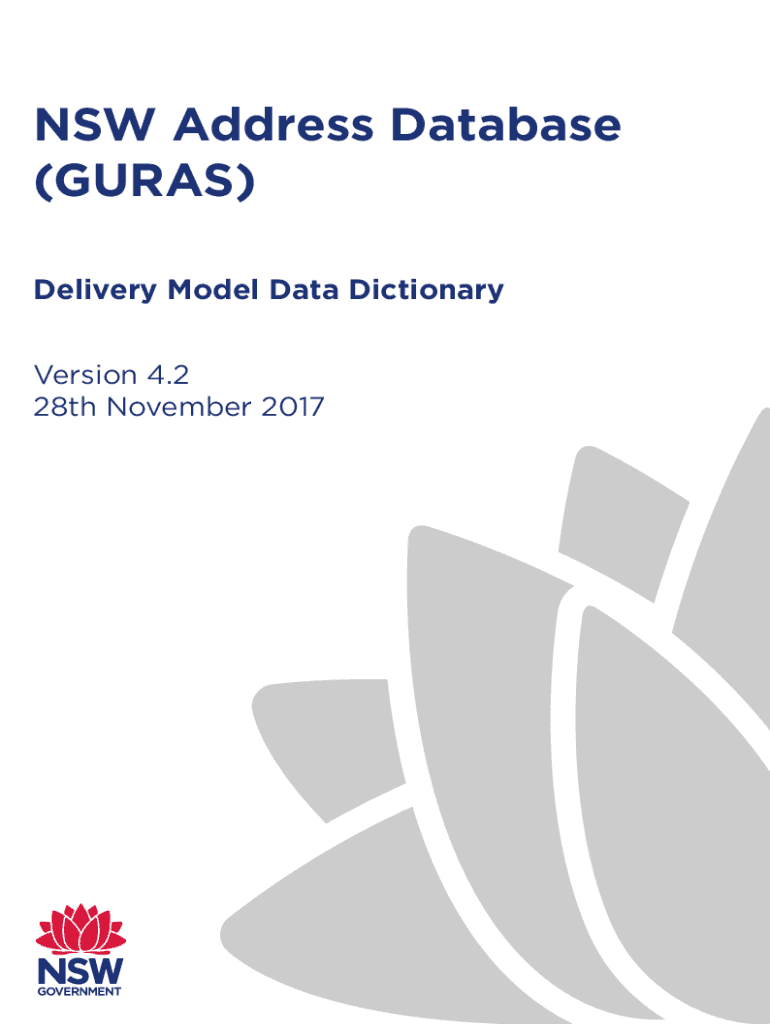 NSW Address Database (GURUS) Delivery Model Data Dictionary Version 4.2 28th November 2017Document summary This document details the delivery model for the NSW Address Database (GURUS) maintained