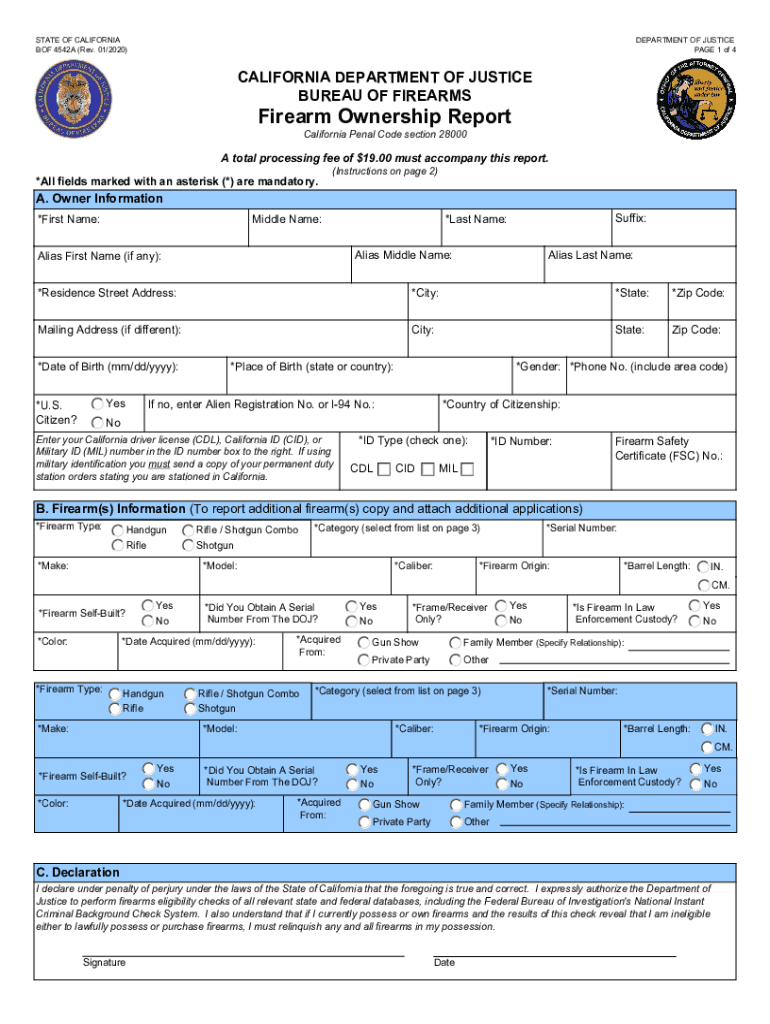 Get the free Firearm Ownership Report - California Department of Justice - oag ca