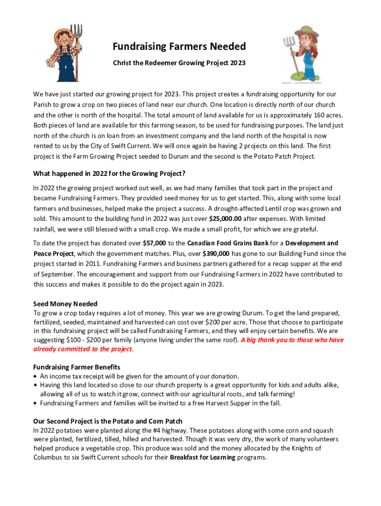 Fundraising Farmers Needed Christ the Redeemer Growing Project 2023We have just started our growing project for 2023. This project creates a fundraising opportunity for our Parish to grow a crop on