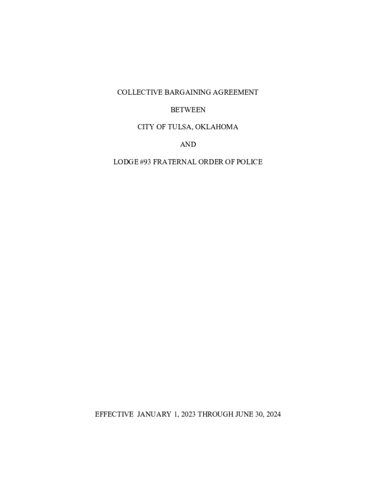 COLLECTIVE BARGAINING AGREEMENT BETWEEN CITY OF TULSA, OKLAHOMA AND LODGE #93 FRATERNAL ORDER OF POLICEEFFECTIVE JANUARY 1, 2023, THROUGH JUNE 30, 2024TABLE OF CONTENTS COLLECTIVE BARGAINING AGREEMENT