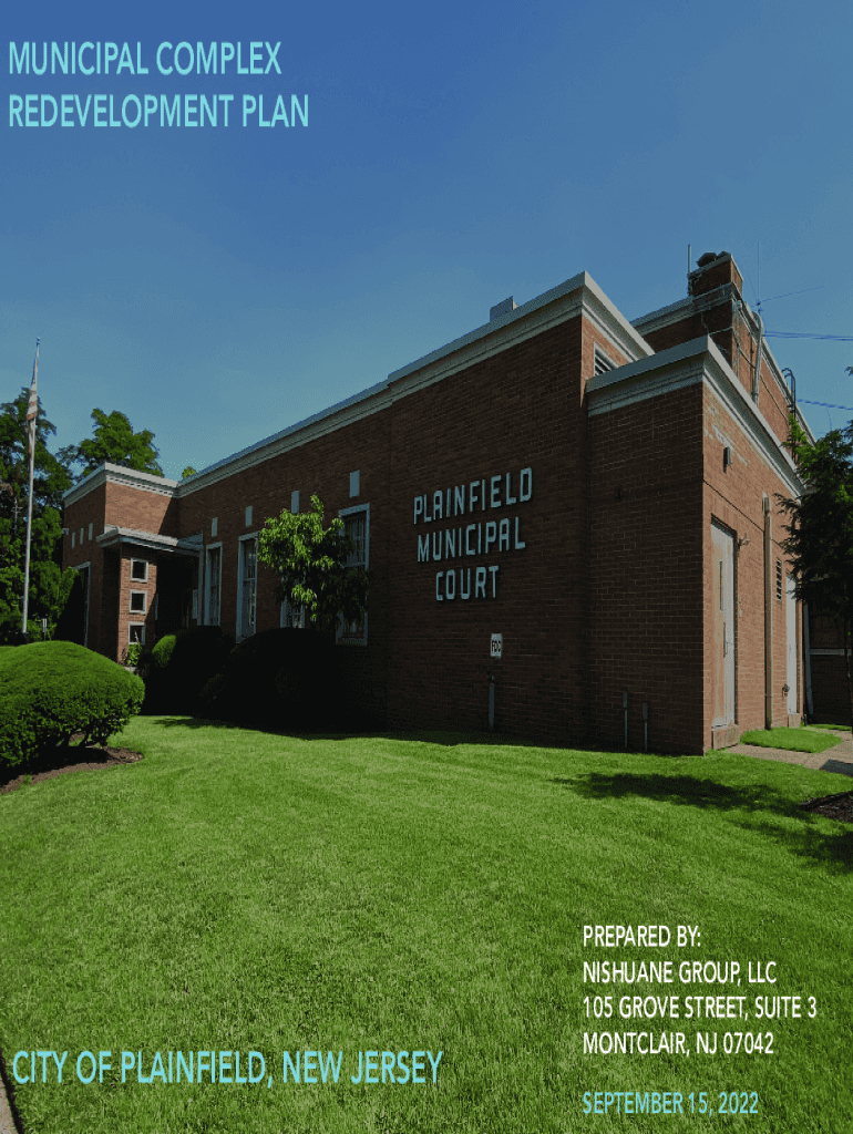 MUNICIPAL COMPLEX REDEVELOPMENT PAUCITY OF PLAINFIELD, NEW JERSEYPREPARED BY: NISHANT GROUP, LLC 105 GROVE STREET, SUITE 3 MONTCLAIR, NJ 07042 SEPTEMBER 15, 2022MUNICIPAL COMPLEX REDEVELOPMENT PLANMunicipal