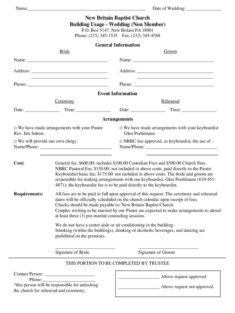 Name:___Date of Wedding: ___New Britain Baptist Church