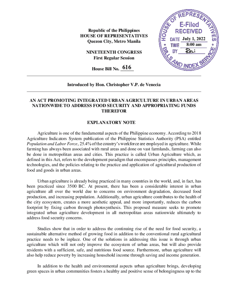 Republic of the Philippines HOUSE OF REPRESENTATIVES Quezon City, Metro Manila July 1, 2022 8:00 nineteenth CONGRESS First Regular Session616 House Bill No. ___ ___ Introduced by Hon. Christopher
