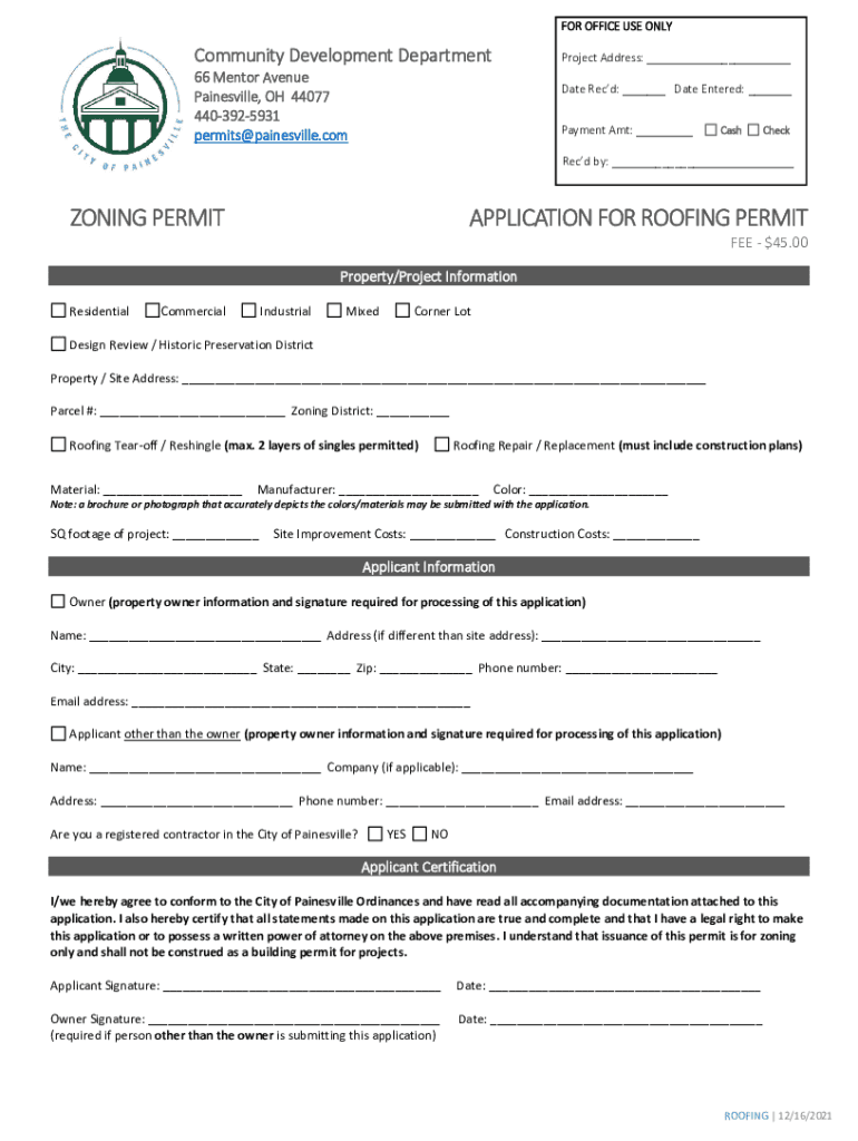 New roofing apprevised12292021 is an updated version of the roofing application form that needs to be filed for roofing projects.
