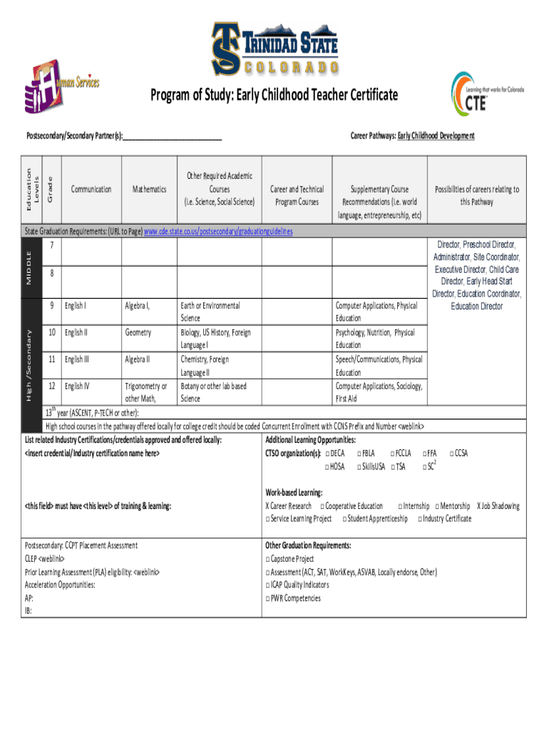 Get the free Program of Study: Early Childhood Teacher Certificate