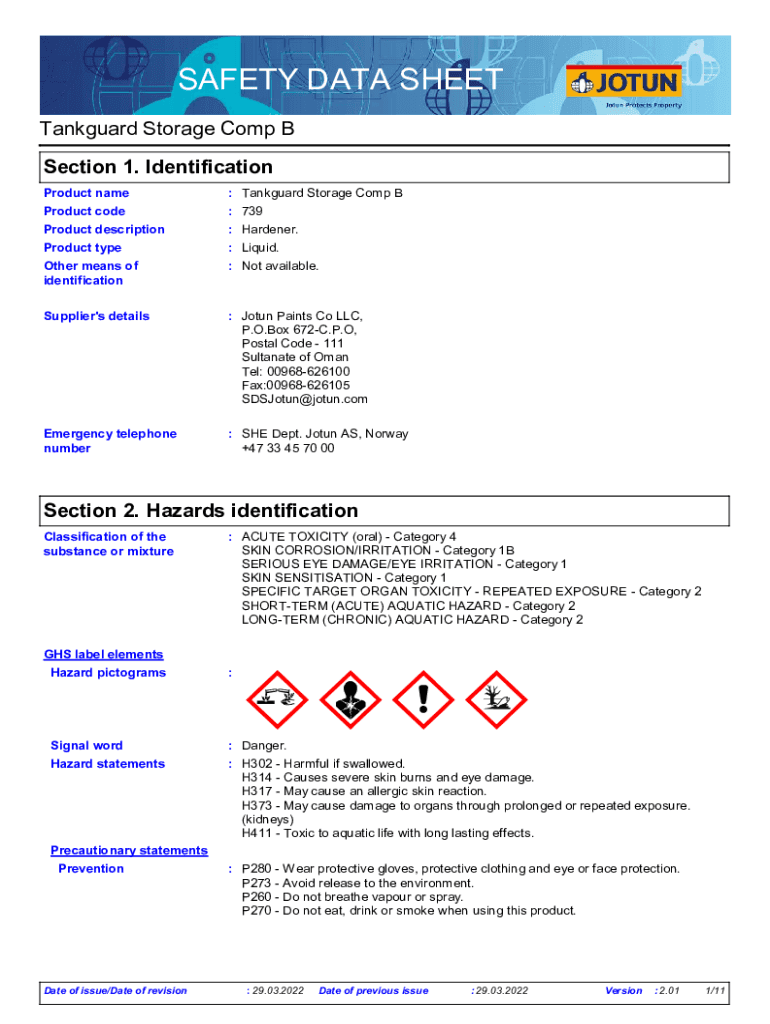 Get the free Tankguard Storage Comp B (MM-WCSE) - Jotun - ISS SDS GHS United Nations (UN) - Revis...