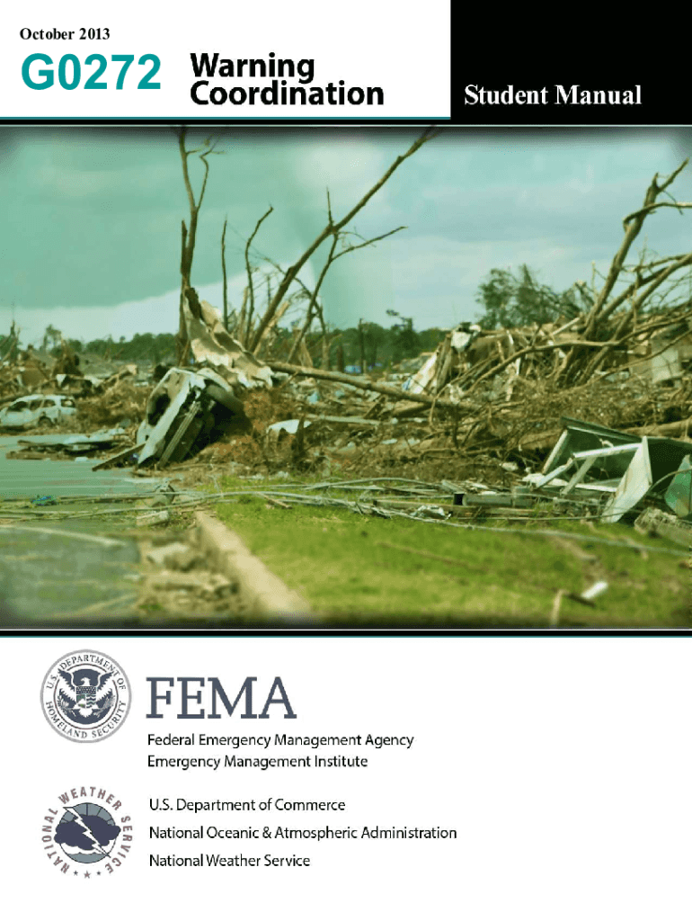 October 2013G0272Warning CoordinationStudent ManualFEDERAL EMERGENCY MANAGEMENT AGENCY EMERGENCY MANAGEMENT INSTITUTE October 2013G0272Acknowledgements The preparation of this course was made possible