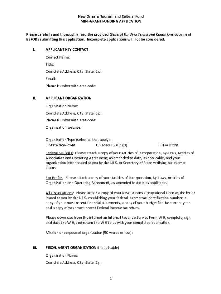 Get the free New Orleans Tourism and Cultural Fund MINI-GRANT ...