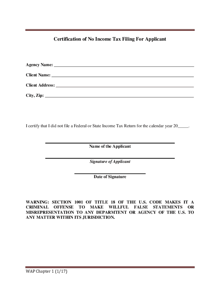 Certification of No Income Tax Filing For ApplicantAgency Name: ___