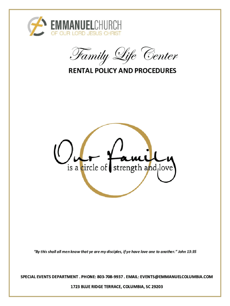Family Life Interdental POLICY AND Procedures this shall all men know that ye are my disciples, if ye have love one to another. John 13:35SPECIAL EVENTS DEPARTMENT. PHONE: 8037089937. EMAIL: EVENTS@EMMANUELCOLUMBIA.COM