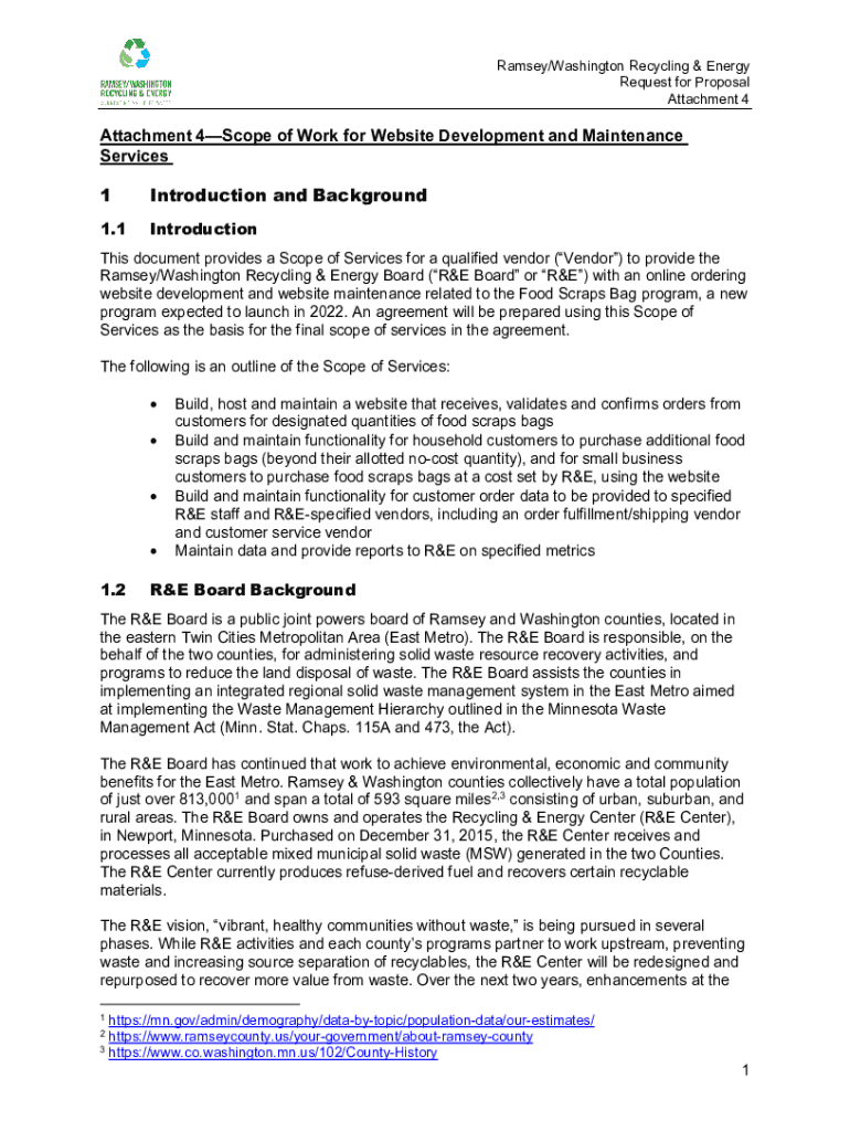 Ramsey/Washington Recycling & Energy Request for Proposal Attachment 4Attachment 4Scope of Work for Website Development and Maintenance Services1Introduction and Background1.1IntroductionThis document