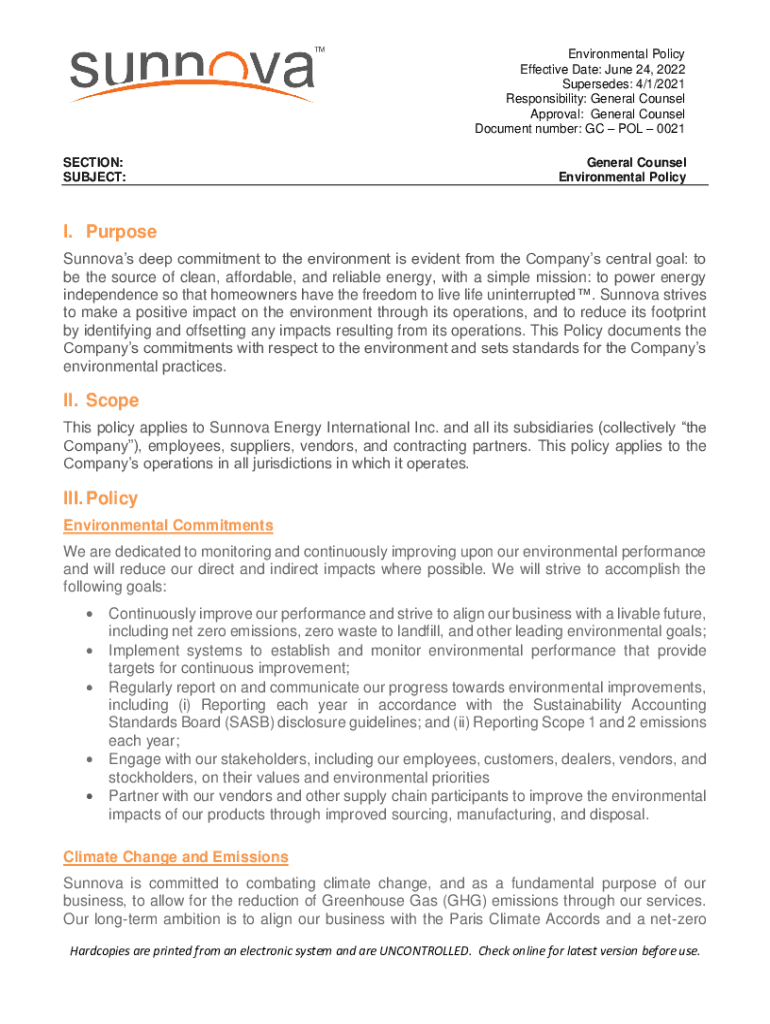 Environmental Policy Effective Date: June 24, 2022, Supersedes: 4/1/2021 Responsibility: General Counsel Approval: General Counsel Document number: GC POL 0021 SECTION: SUBJECT:General Counsel Environmental