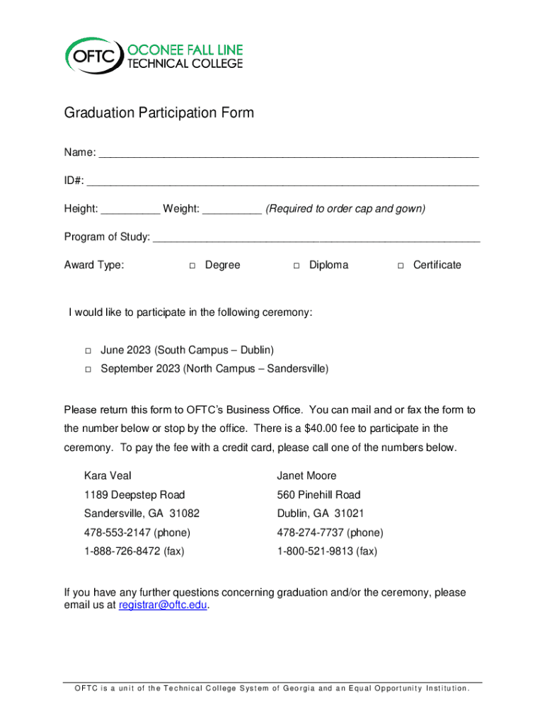 Get the free Graduation Ceremony Participation Form Warner Robins, ...