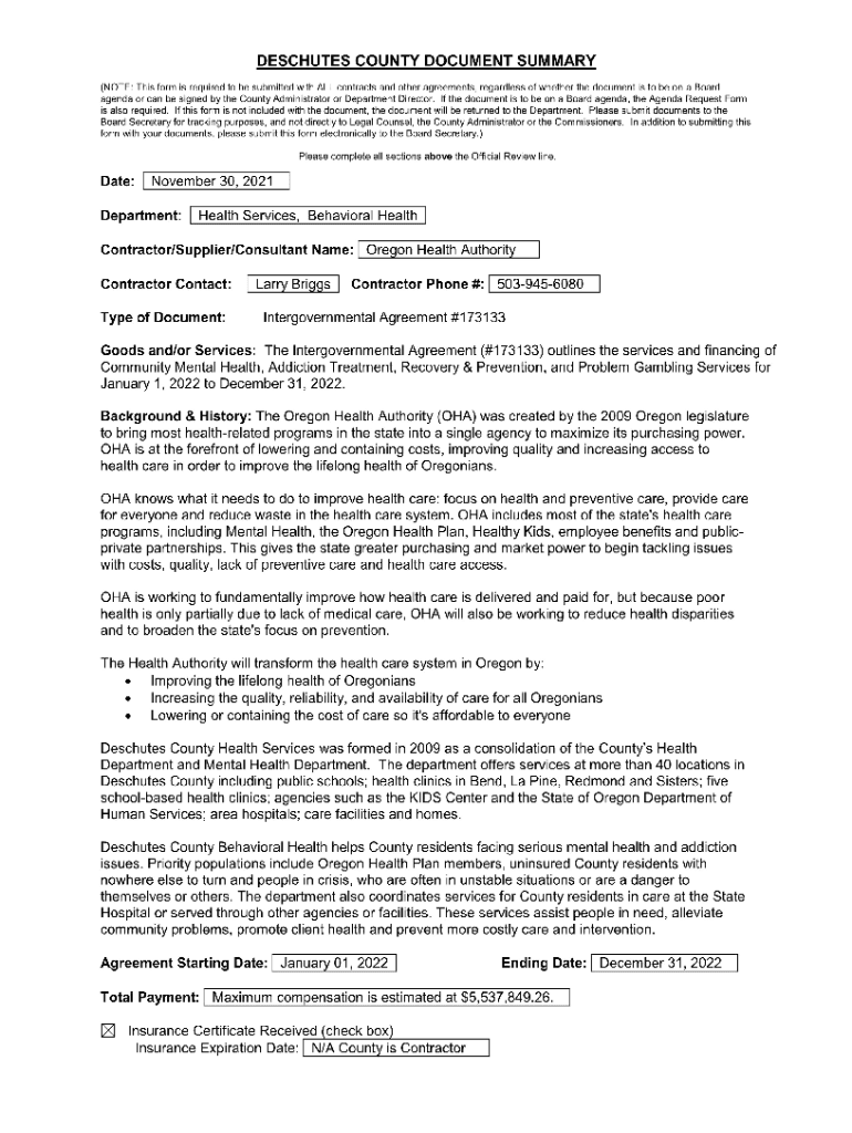 Get the free DESCHUTES COUNTY DOCUMENT SUMMARY