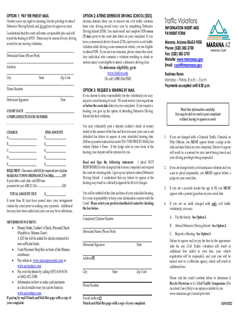 OPTION 1: PAY THE FINE BY ADOPTION 2: ATTEND DEFENSIVE DRIVING SCHOOL (DDS)I hereby waive my right to a hearing, lose the privilege to attend Defensive Driving School, and do not have to appear in