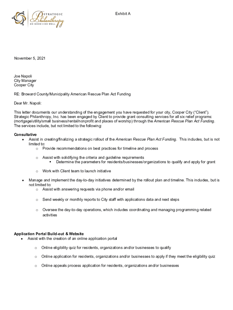 Exhibit November 5, 2021Joe Naomi City Manager Cooper City RE: Broward County/Municipality American Rescue Plan Act Funding Dear Mr. Naomi: This letter documents our understanding of the engagement