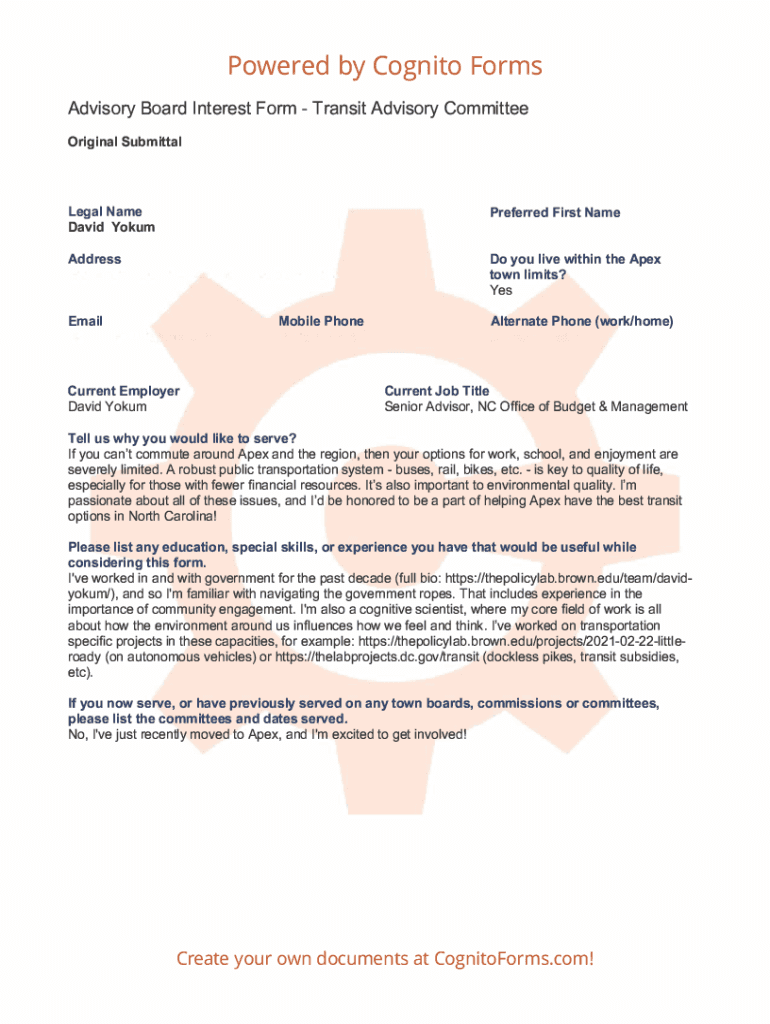 Advisory Board Interest Form Transit Advisory Committee