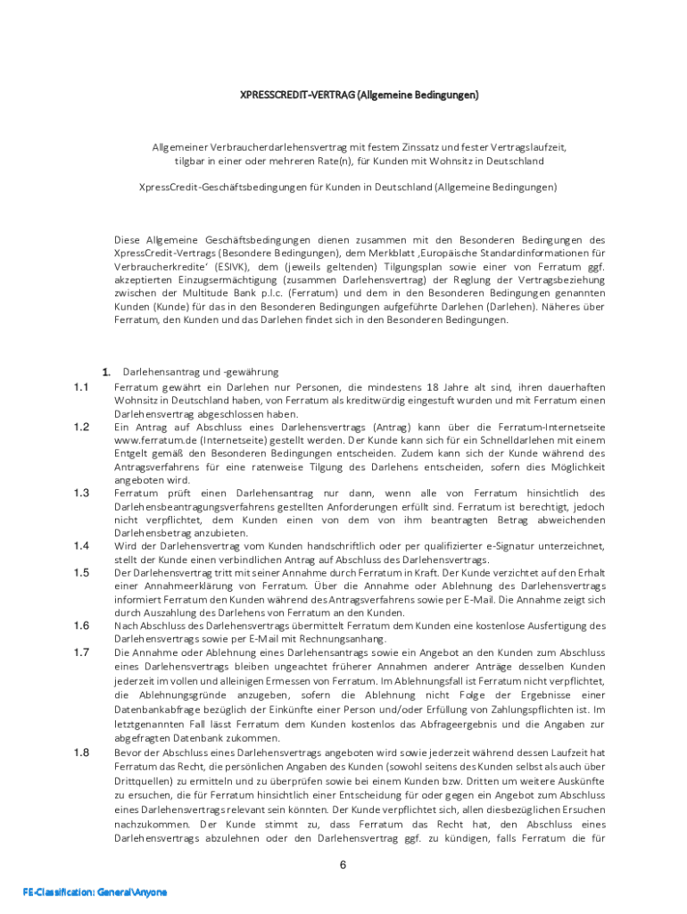 XPRESSCREDITVERTRAG (Allegiance Bedingungen)Allgemeiner Verbraucherdarlehensvertrag MIT fester Instate UND fester Vertragslaufzeit,