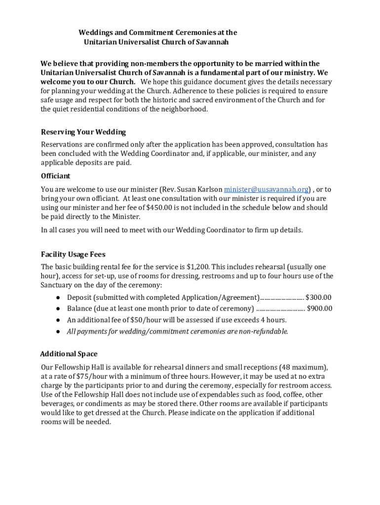 Weddings and Commitment Ceremonies at the Unitarian Universalist Church of Savannah We believe that providing nonmembers the opportunity to be married within the Unitarian Universalist Church of Savannah