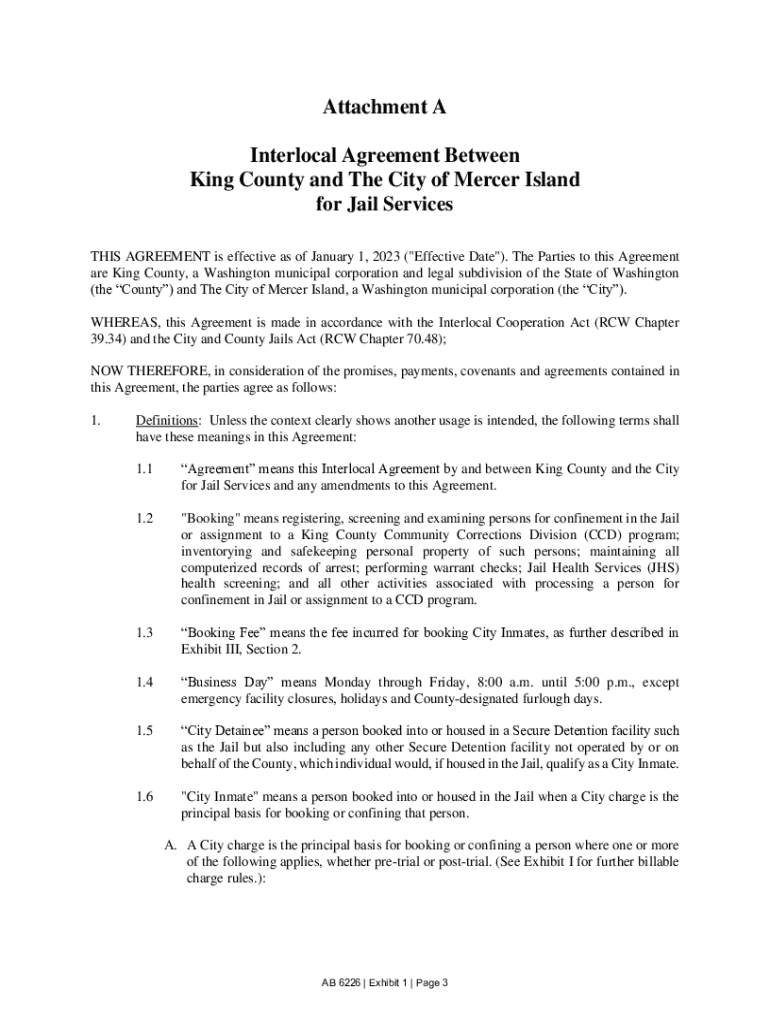 Attachment A Interlocal Agreement Between King County and The City of Mercer Island for Jail Services THIS AGREEMENT is effective as of January 1, 2023 (\” Effective Date\”). The Parties to this