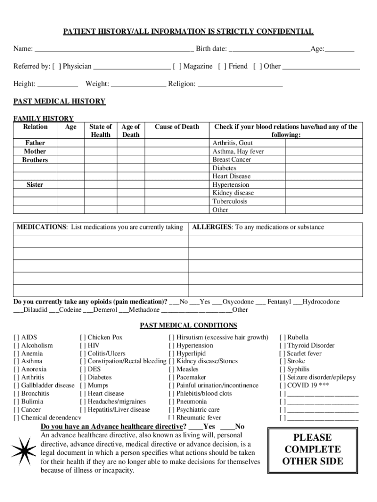 Get the free PATIENT HISTORY/ALL INFORMATION IS STRICTLY CONFIDENTIAL