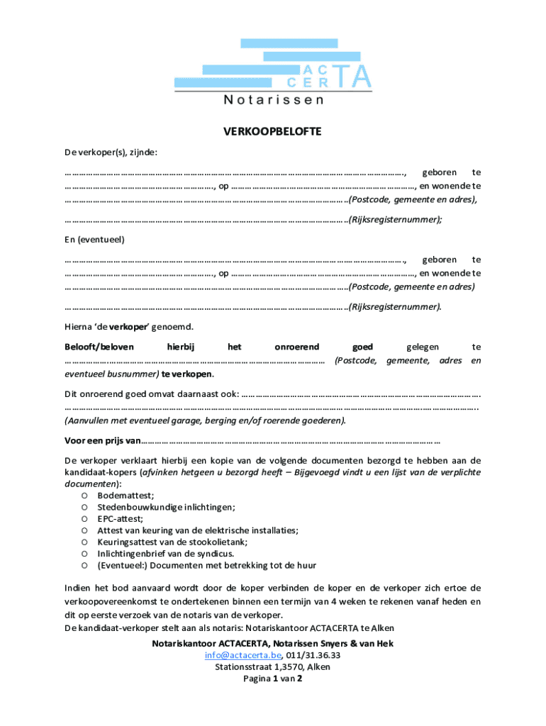 VERKOOPBELOFTE De proper(s), zine:., reborn the., op., en opened the.(Postcode, generate