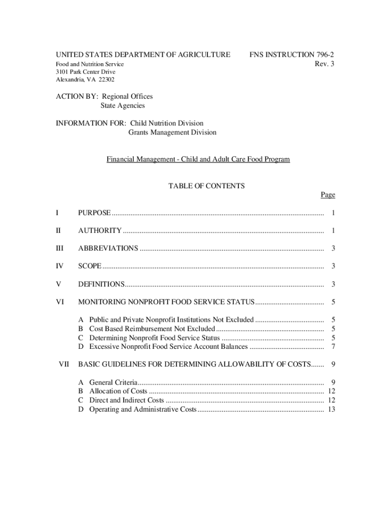 UNITED STATES DEPARTMENT OF AGRICULTURE Food and Nutrition Service 3101 Park Center Drive Alexandria, VA 22302FNS INSTRUCTION 7962 Rev. 3ACTION BY: Regional Offices State Agencies INFORMATION FOR: