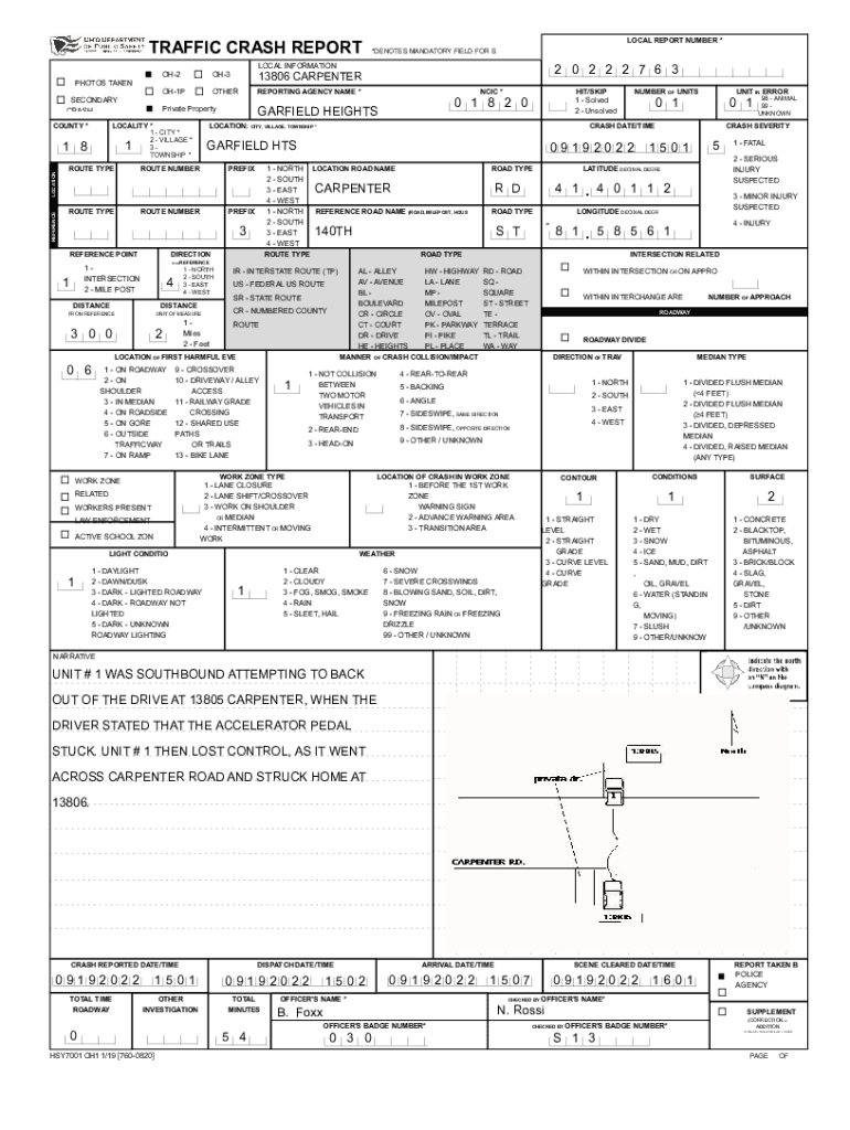 ROUTE TYPICAL INFORMATIONnOH2OH3OH1POTHERnPrivate PropertyLOCALITY *LOCAL REPORT NUMBER *