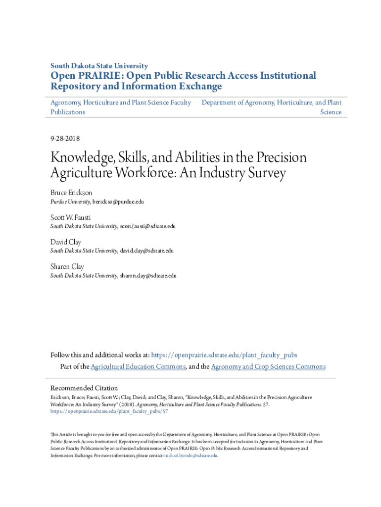 South Dakota State UniversityOpen PRAIRIE: Open Public Research Access Institutional Repository and Information Exchange Agronomy, Horticulture and Plant Science Faculty PublicationsDepartment of