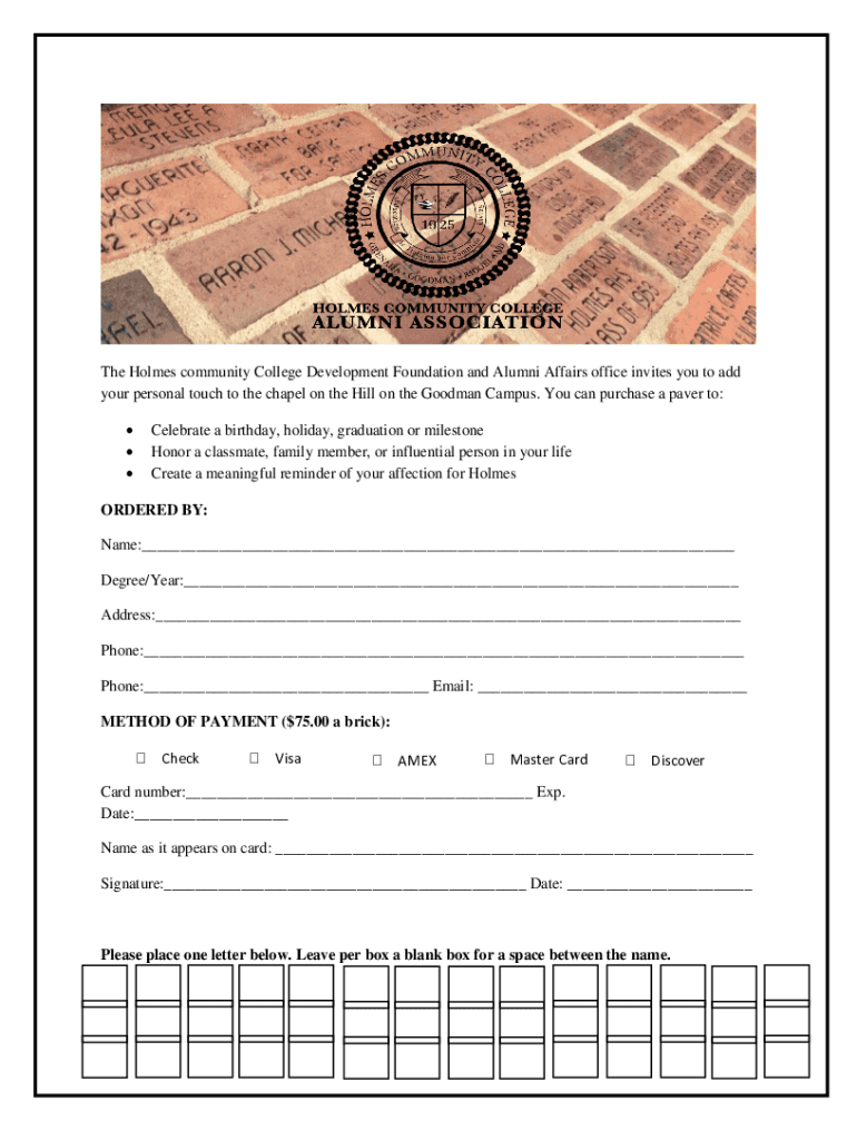 Fill out your chapel brick order form online with pdfFiller!