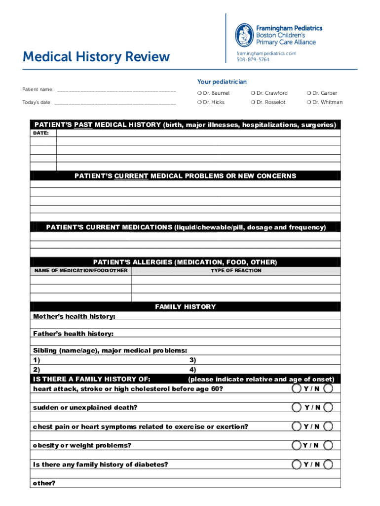 Medical History Reviewframinghampediatrics.com
