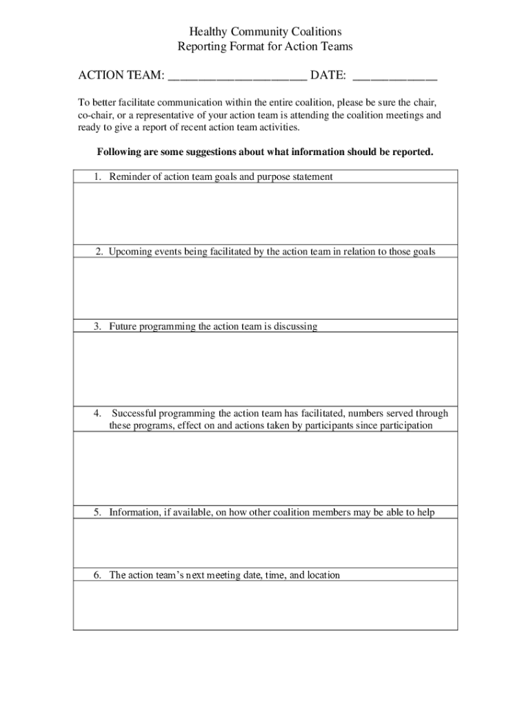Get the free Reporting Format for Action Teams