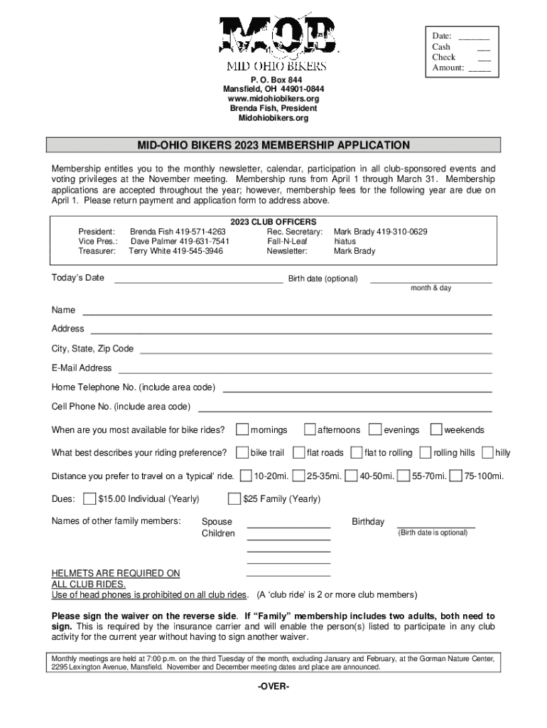 Midohiobikers.orgDateMIDOHIO BIKERS 2023 MEMBERSHIP APPLICATION