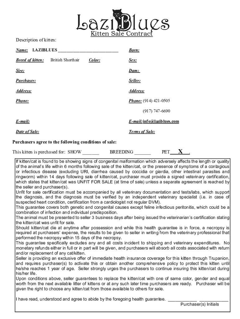 pdfFiller has made it simple to fill out and eSign british shorthair kittens sydney. The application has capabilities that allow you to modify and rearrange PDF content, add fillable fields, and eSign the document. Begin a free trial to discover all of the features of pdfFiller, the best document editing solution.