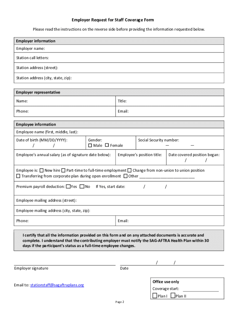 Get the free Employer Request for Staff Coverage