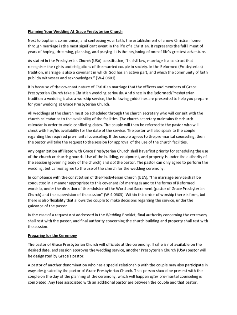 Planning Your Wedding At Grace Presbyterian Church Next to baptism, communion, and confessing your faith, the establishment of a new Christian home through marriage is the most significant event in