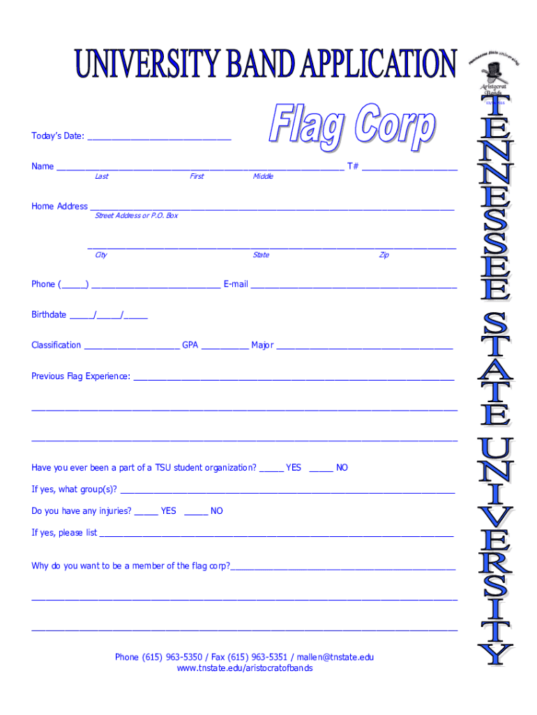 03/18/2016Todays Date: ___ Name ___ T# ___ LastFirstMiddleHome Address ___ Street Address or P.O. Box___ CityStateZipPhone (___) ___ Email ___ Birthdate ___/___/___ Classification ___ GPA ___ Major