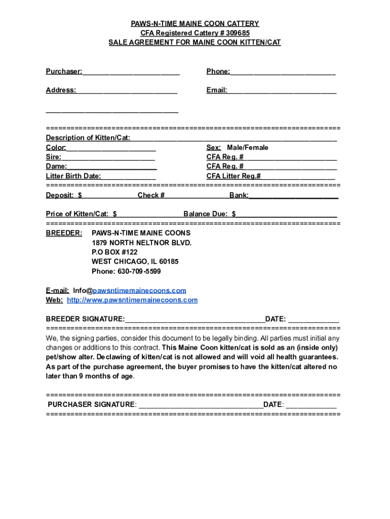 Get the free Maine Coon Sale Agreement