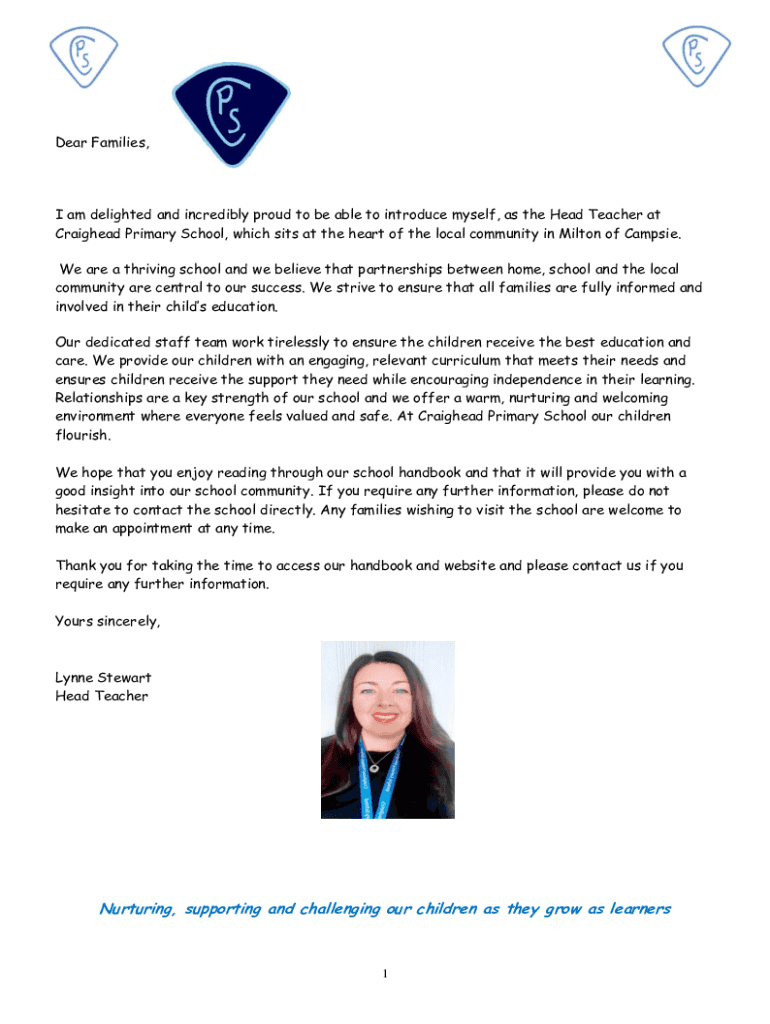 Dear Families, I am delighted and incredibly proud to be able to introduce myself, as the Head Teacher at
