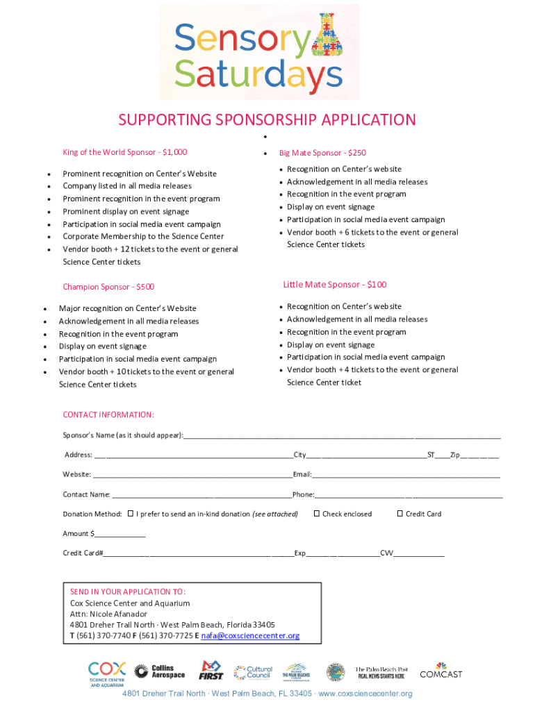 SUPPORTING SPONSORSHIP APPLICATION